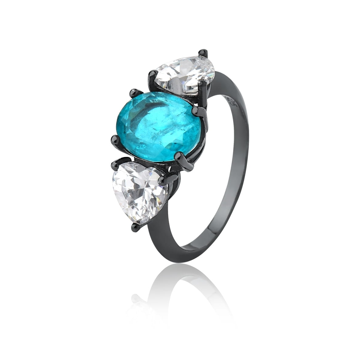 Compre agora e destaque-se com a beleza e a elegância do Anel em Prata com Pedra Oval Fusion e Zircônias em Formato de Coração!