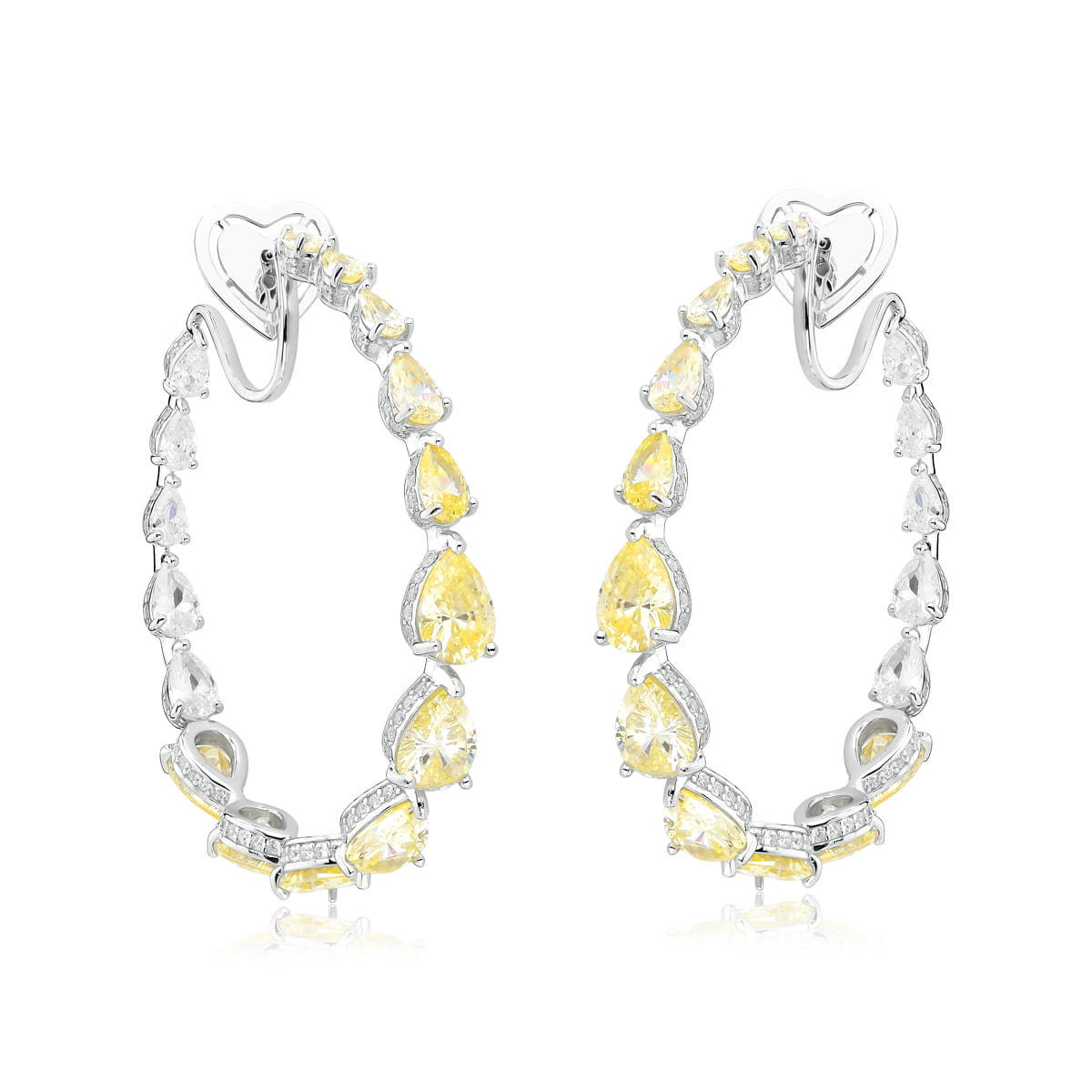 Brinco em Prata Argola com Zircônias em formato corações Coleção Yellow Fancy.