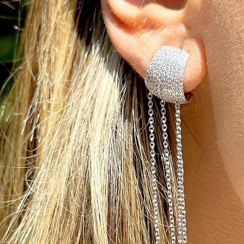Compre agora e destaque-se com a beleza e a elegância do Brinco Argola com Fios de Corrente Cravejados em Prata 925!