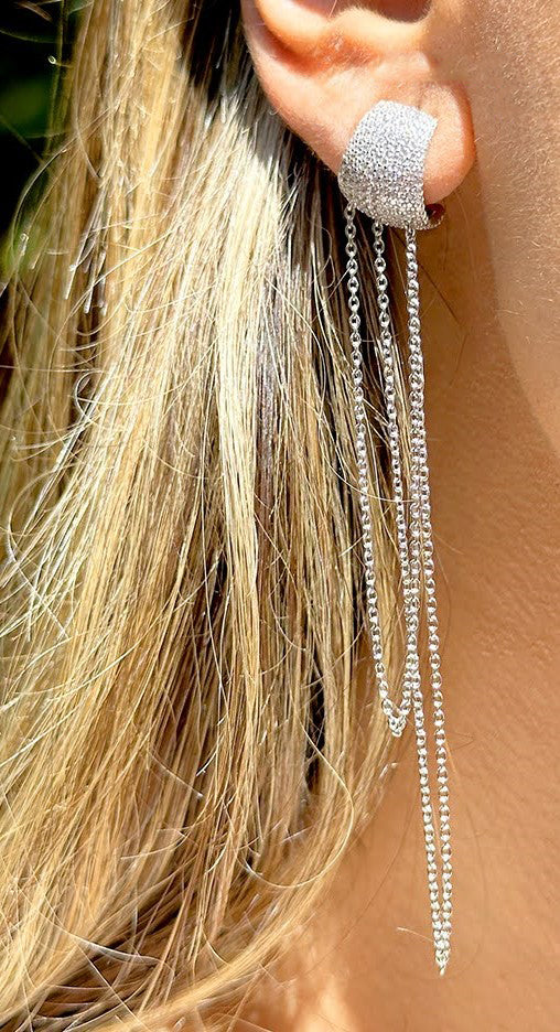 Estes brincos são extremamente versáteis e podem ser usados em diversas ocasiões. Para um visual diário elegante, combine-os com outras joias delicadas em prata, permitindo que os fios de corrente cravejados adicionem um toque de sofisticação ao seu estilo cotidiano.