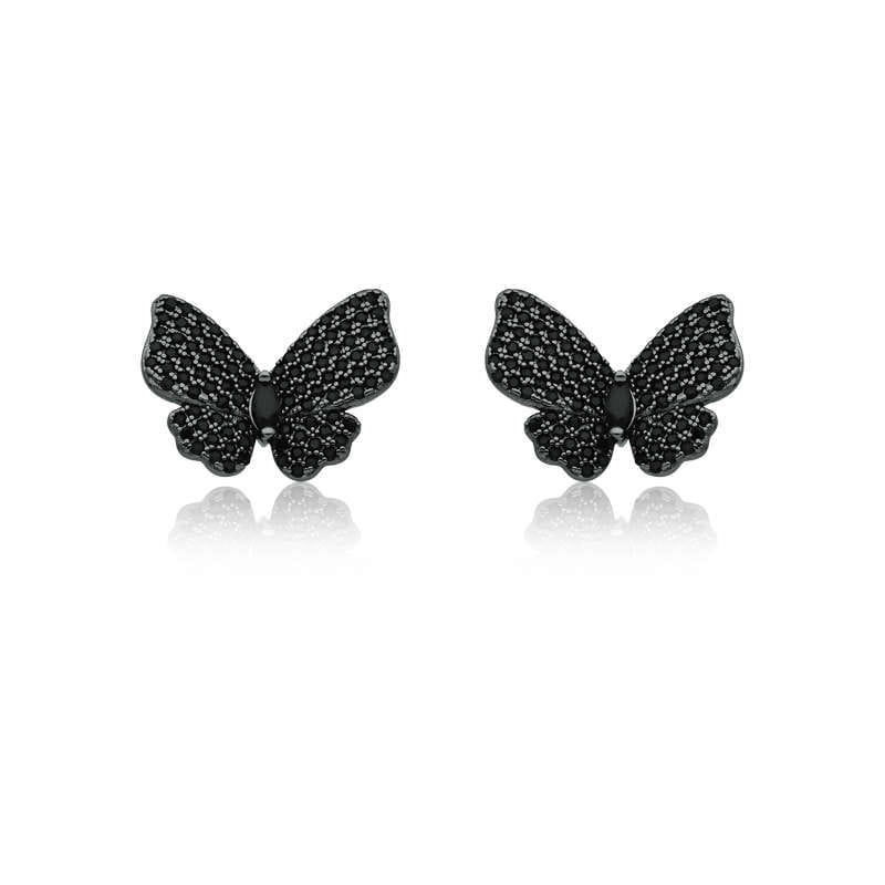 Brinco formato borboleta com banho Rodio Negro e Zircônias pretas.