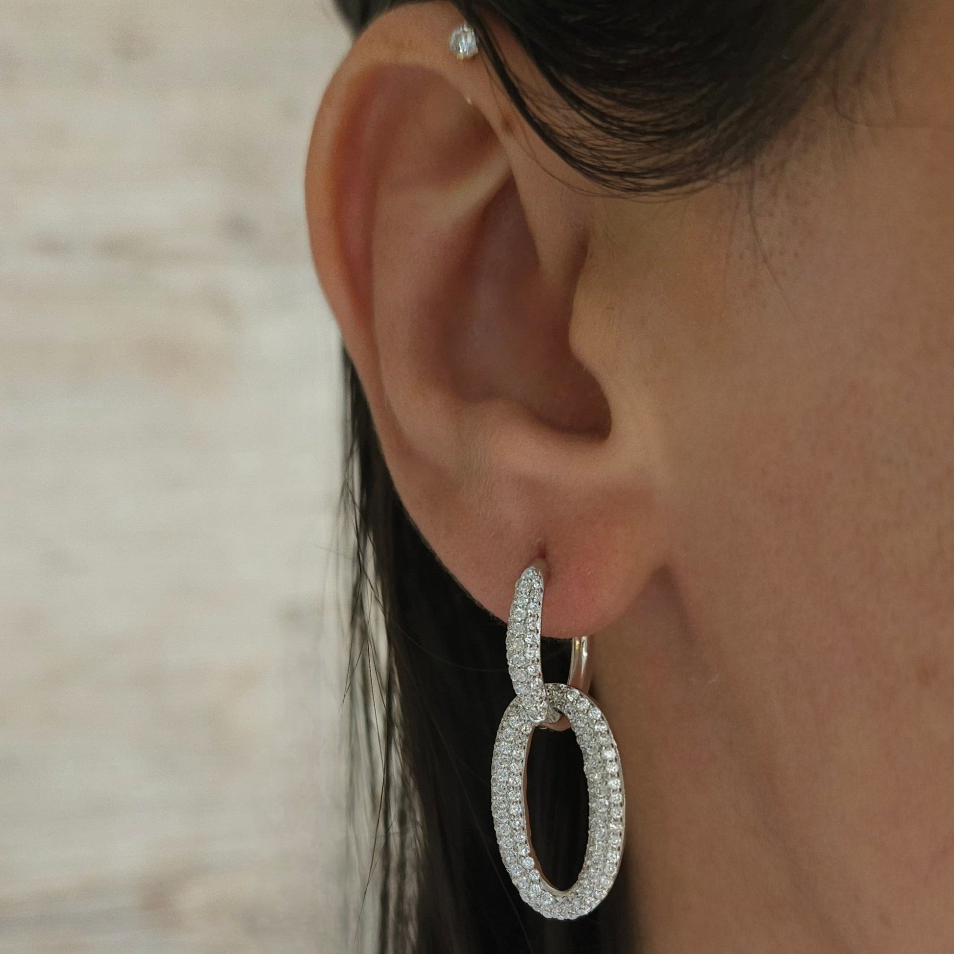 Brinco em Prata formato Elos cravejados com Zircônias.