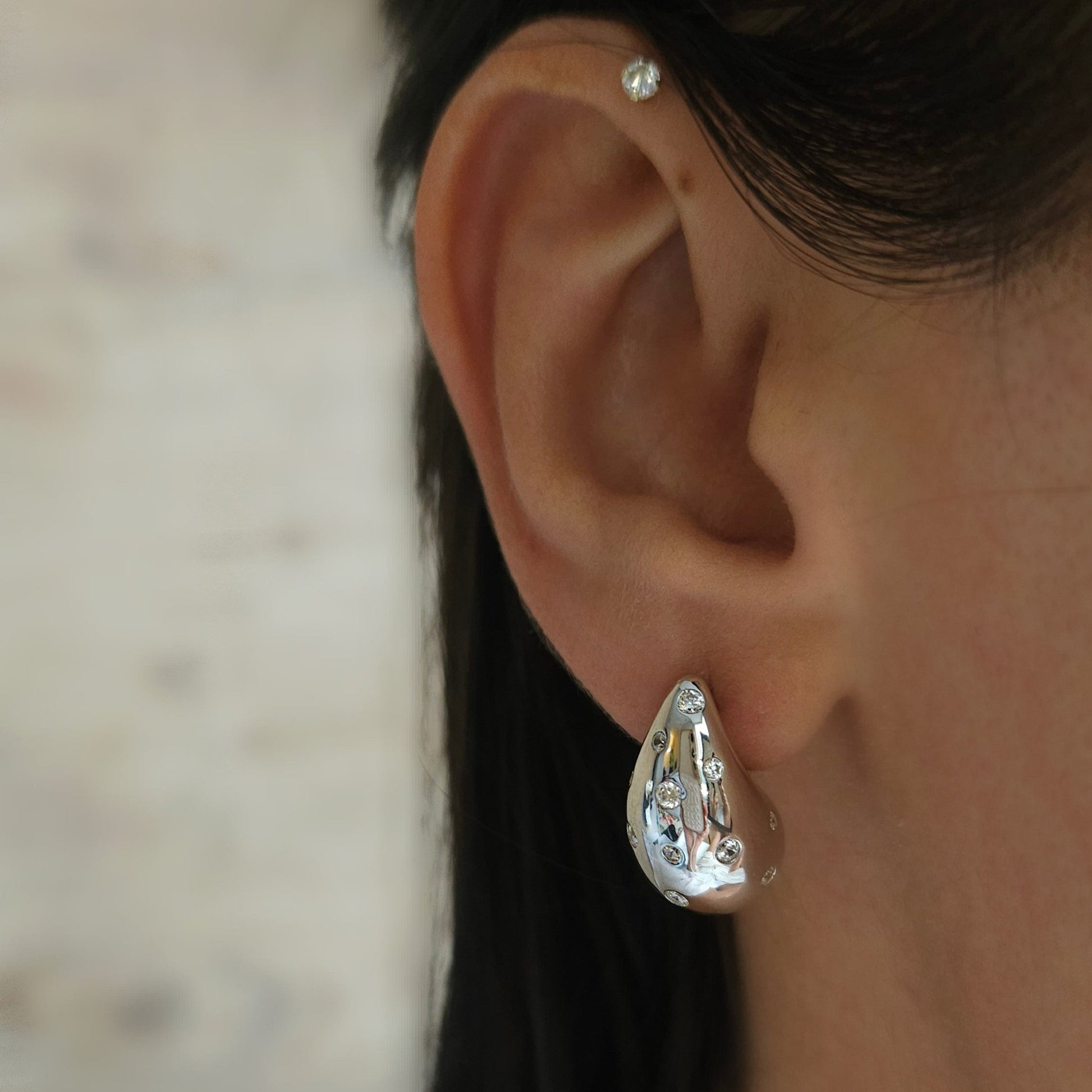 Brinco de Prata em formato Gota com Zircônias cravejadas.