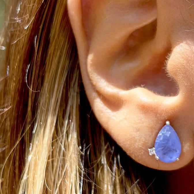 Compre agora e destaque-se com a beleza e a elegância do Brinco Gota Pedra Fusion Tanzanita com Zircônia!