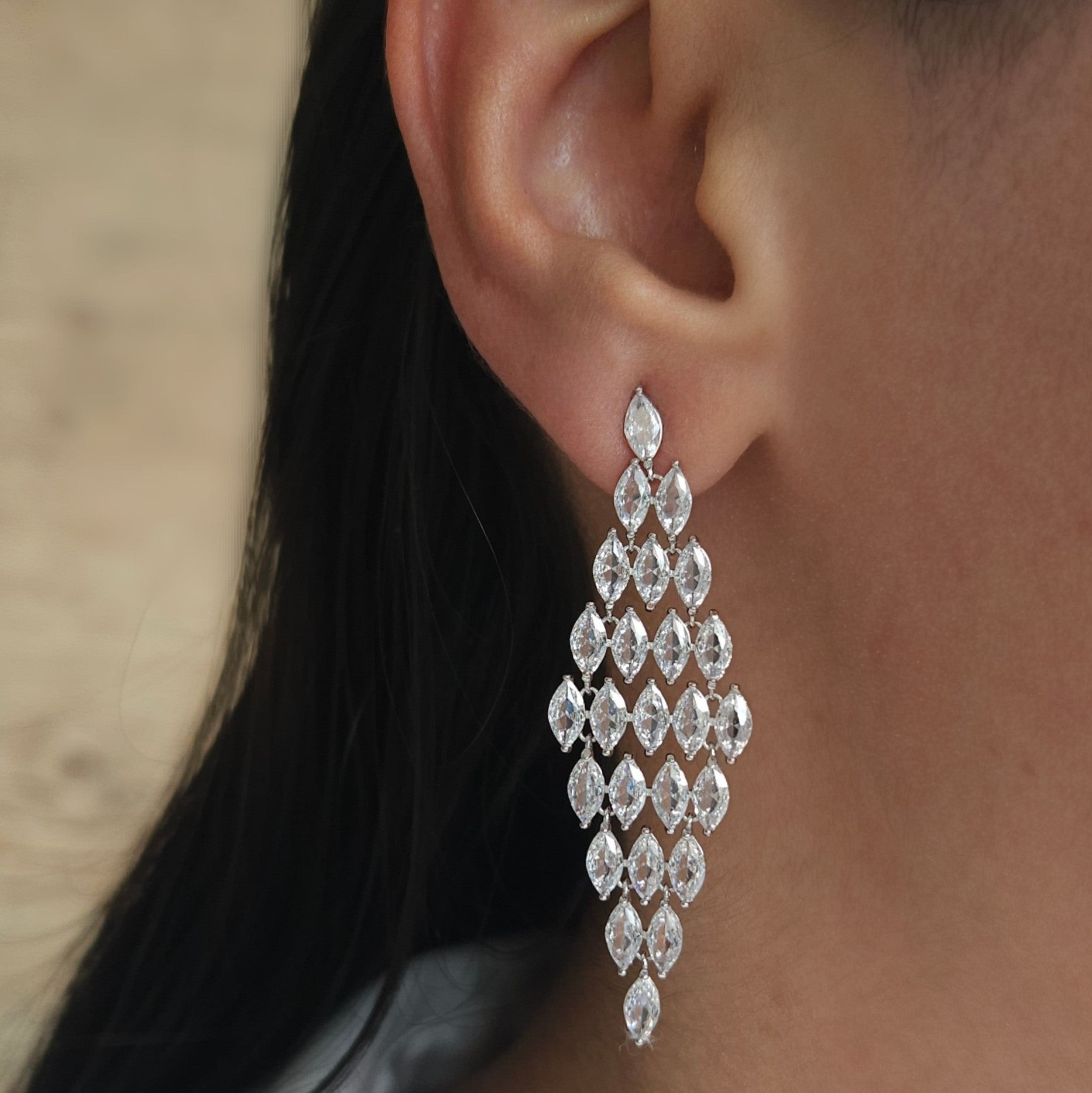 Brinco em Prata 925 formato Losangos com Zircônias.