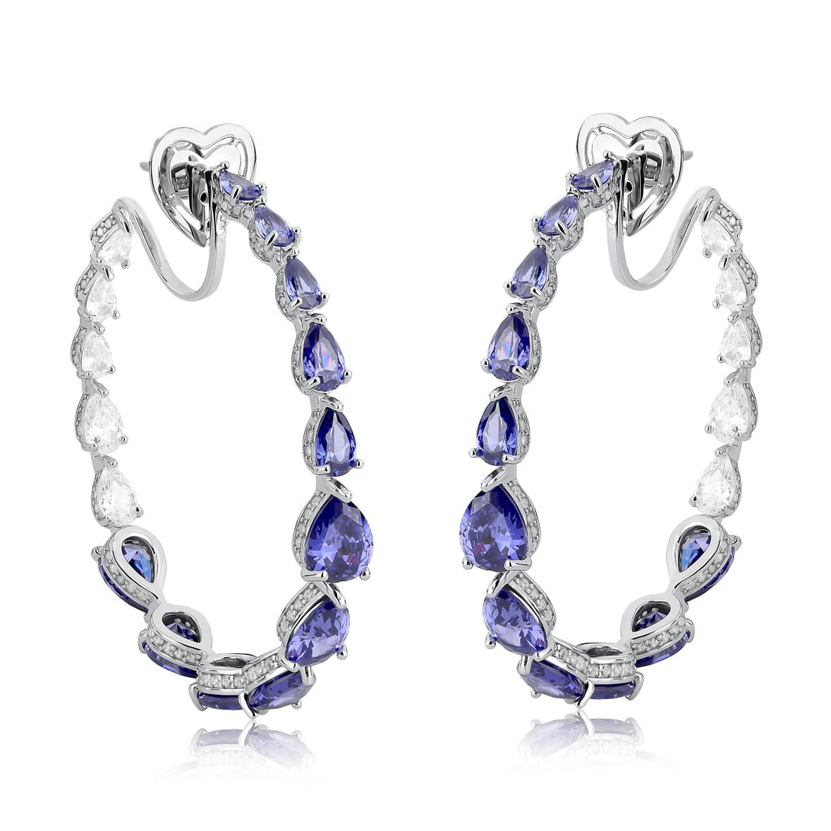 Compre agora e destaque-se com a beleza e a elegância do Brinco Prata 925 Argola Grande com Gotas em Zircônia Tanzanita e Detalhes na Zircônia Cristal!