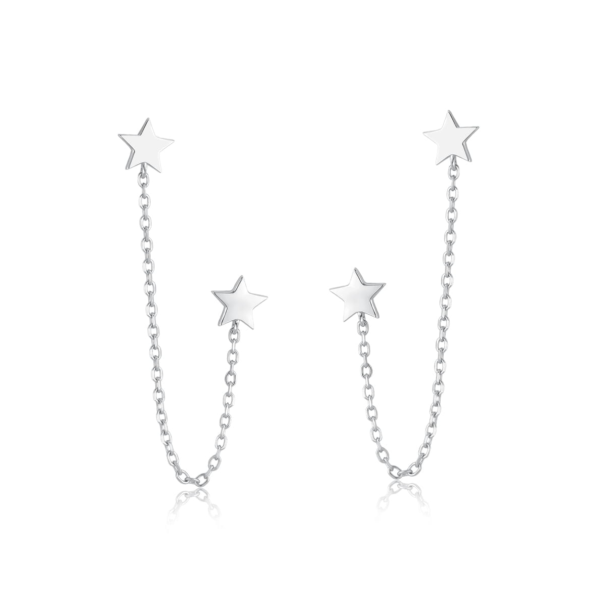 Compre agora e destaque-se com a beleza e a sofisticação do Brinco Prata 925 com 2 Estrelas Lisas e Corrente Pendurada!