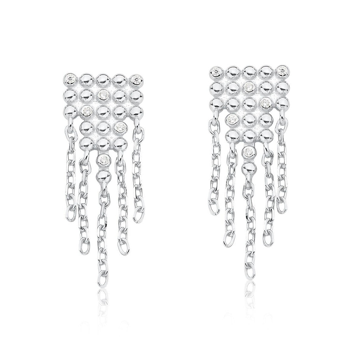 Compre agora e destaque-se com a beleza e sofisticação do Brinco Prata 925 Banhado com Bolinhas, Zircônia Cristal e Correntes Penduradas!