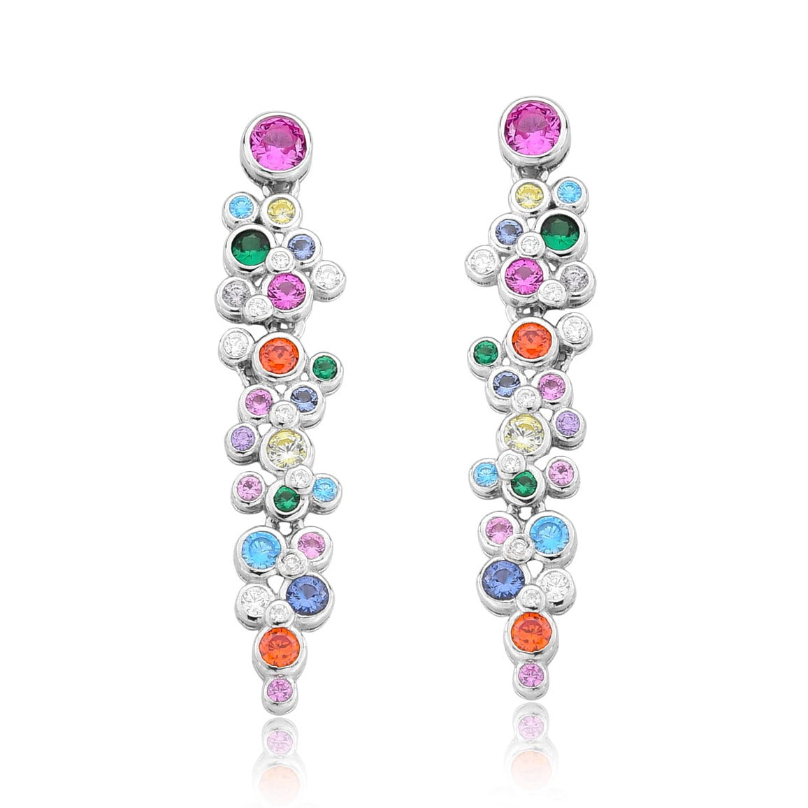 As zircônias coloridas criam um efeito deslumbrante que complementa qualquer look, seja ele casual ou formal. Este brinco é ideal para quem deseja se destacar com uma peça delicada e ao mesmo tempo vibrante.