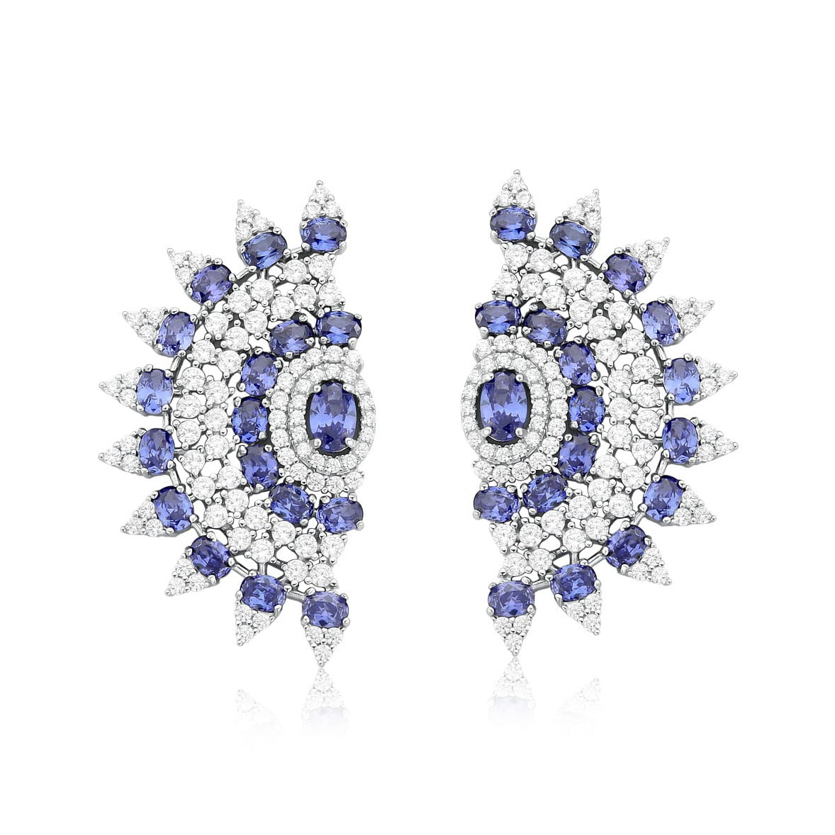 Compre agora e destaque-se com a beleza e a elegância do Brinco Prata 925 Ear Cuff Leque com Ovais Tanzanita e Redondos na Zircônia Cristal!