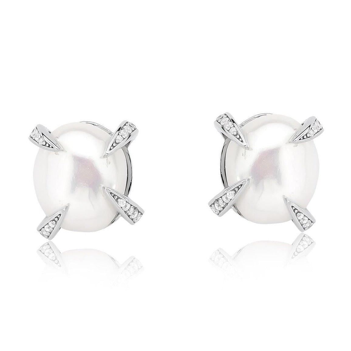 Compre agora e destaque-se com a beleza e a sofisticação do Brinco Prata 925 Pérola Natural com Detalhes de Garra Cravejada em Zircônia Cristal!