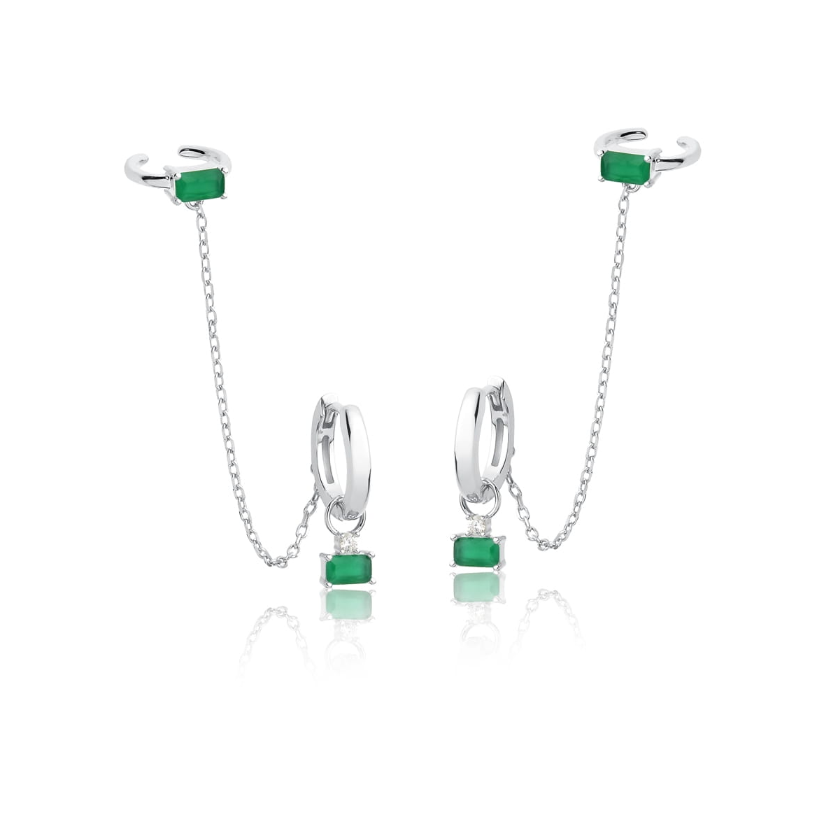 Compre agora e destaque-se com a beleza e a elegância do Brinco Prata Argolinha com Pedra Esmeralda Fusion e Pingente de Corrente Piercing Fake!