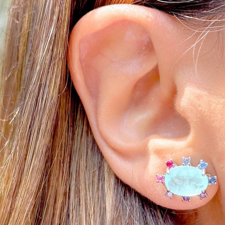 Para um conjunto harmonioso, combine este brinco com outras joias em prata ou com peças que tenham pedras semelhantes. A versatilidade deste brinco permite que você crie várias combinações encantadoras e estilosas.