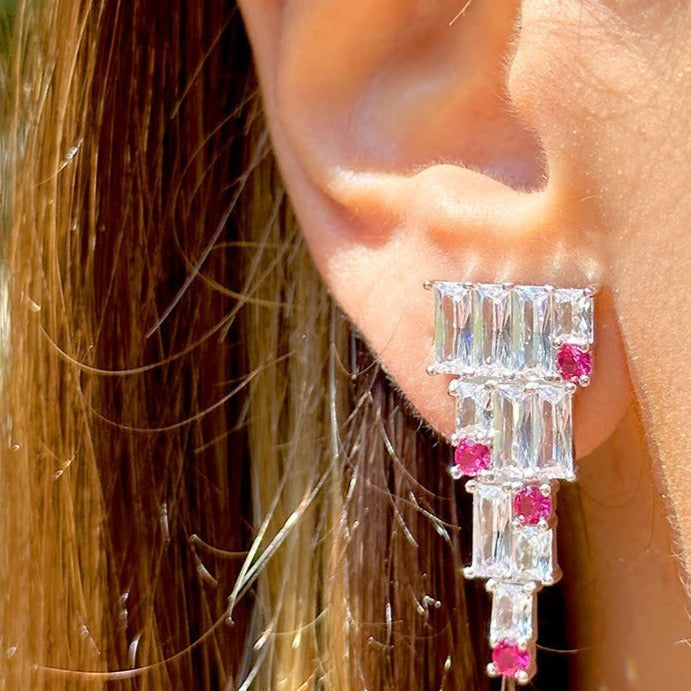 Compre agora e destaque-se com a beleza e a elegância do Brinco Prata 925 com Pirâmide de Cristais!