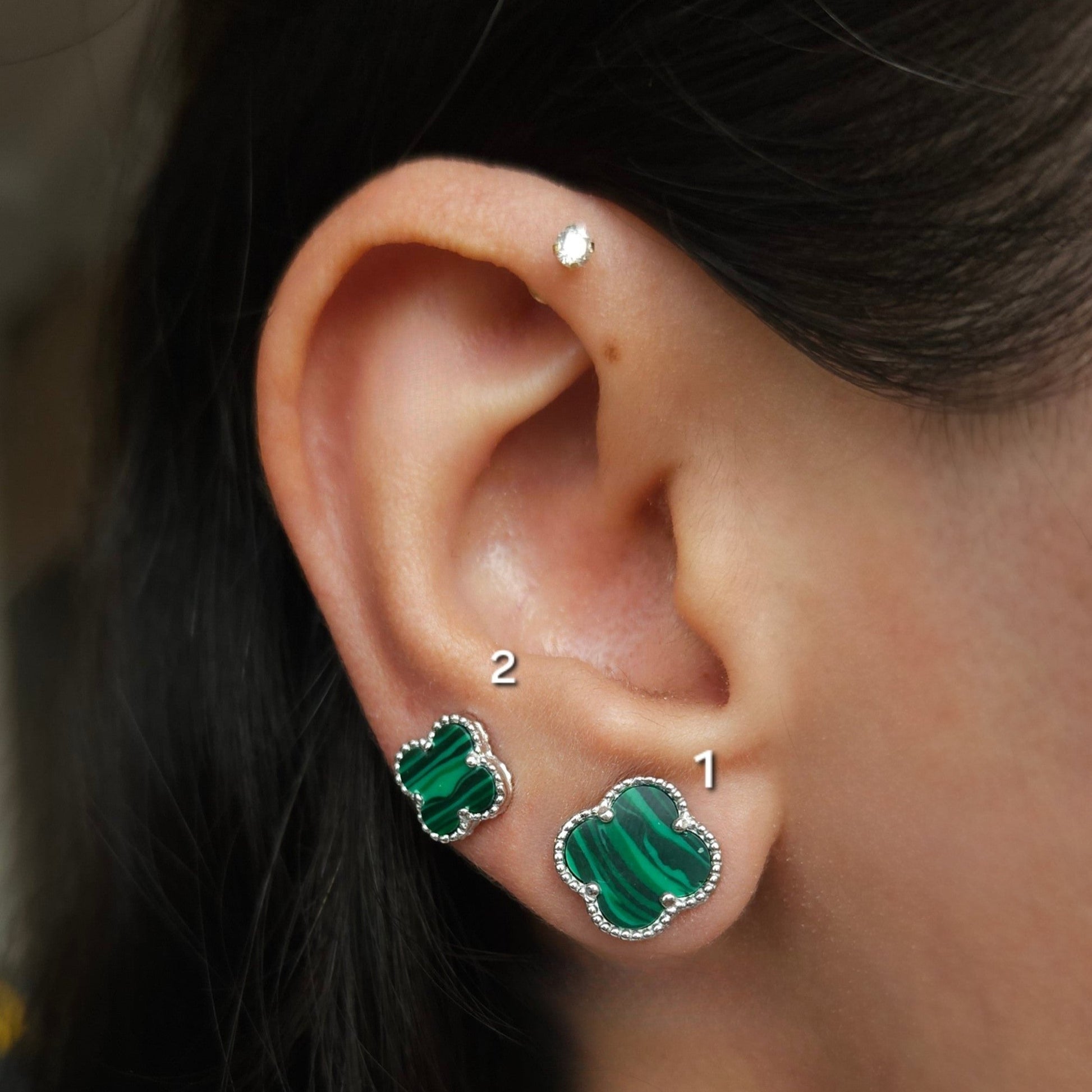 Brinco Trevo Pequeno (2) Pedra Malaquita.