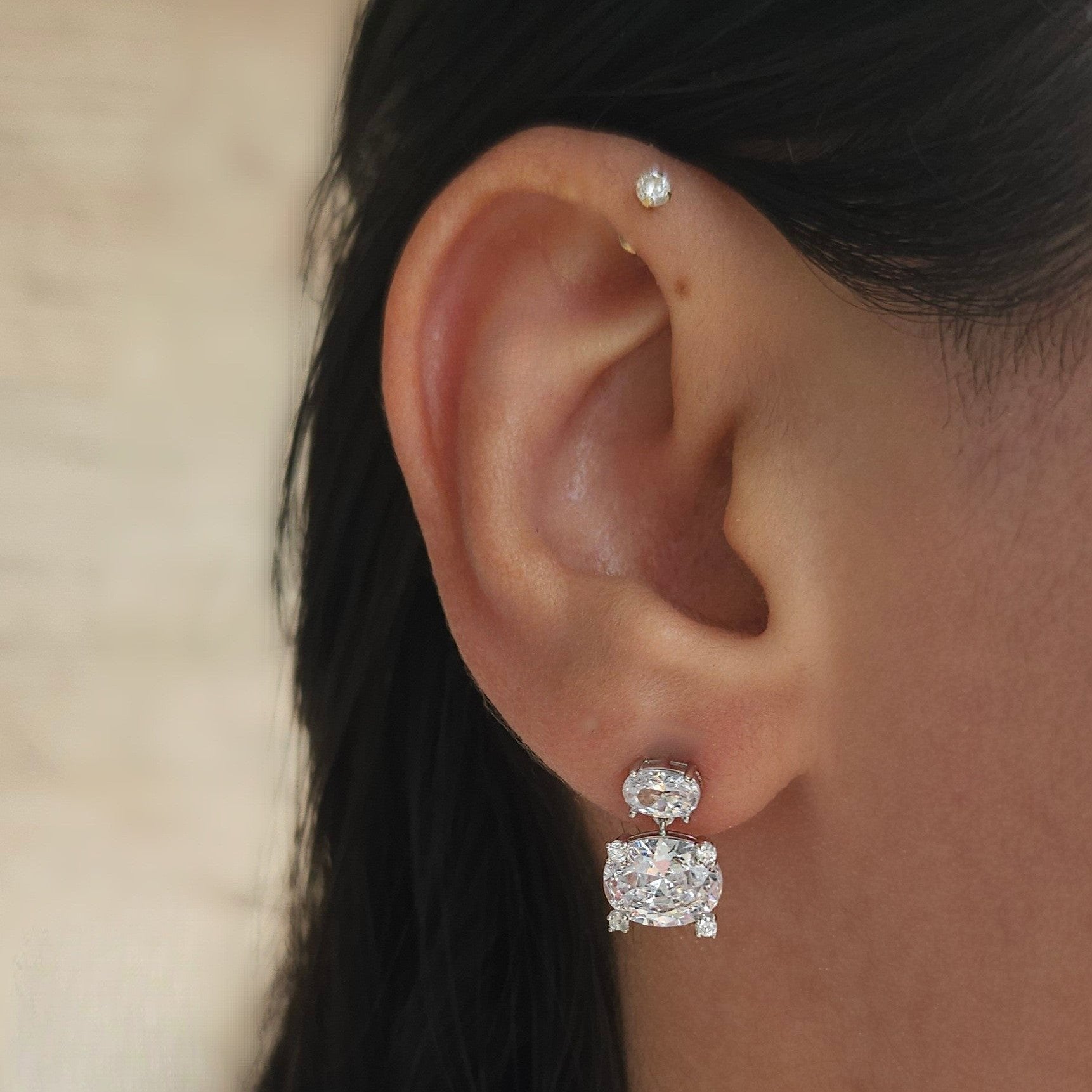 Brinco em Prata com zircônia em formato oval e cravejadas.