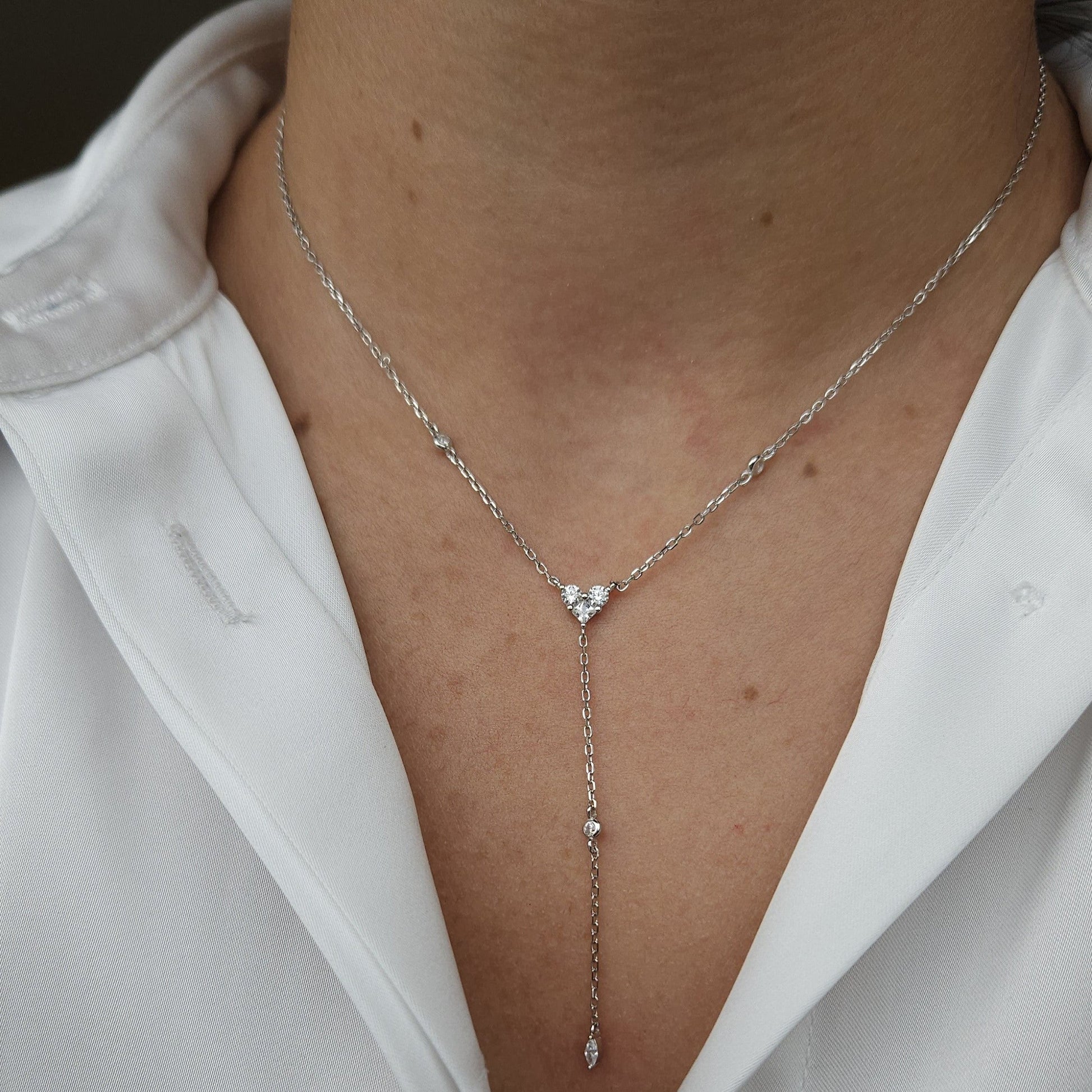 Colar em Prata com pingentes em formato coração e gota zircônia.