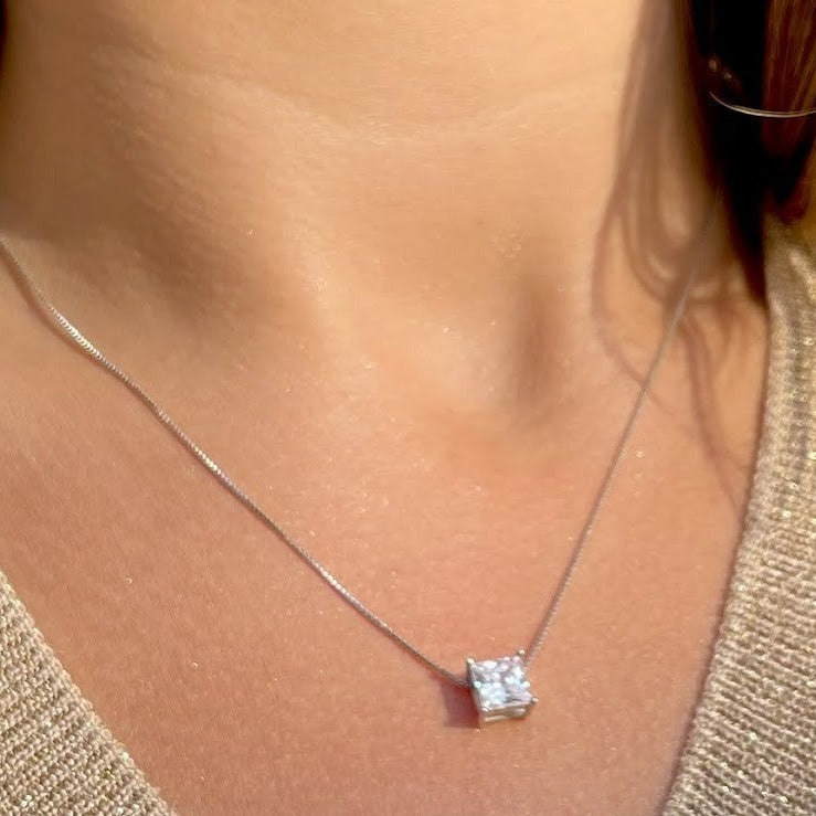 Este colar em prata é adornado com um elegante pingente de pedra, projetado para adicionar um toque de sofisticação e simplicidade ao seu visual. A peça destaca-se pela sua versatilidade, sendo adequada para qualquer ocasião, desde eventos formais até o uso diário.