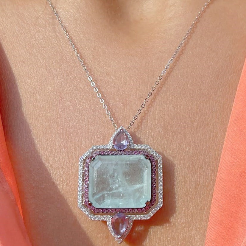 Este colar em prata com pedra é uma escolha perfeita para adicionar um toque de elegância e glamour ao seu estilo, tornando-o um item indispensável no seu porta-joias.