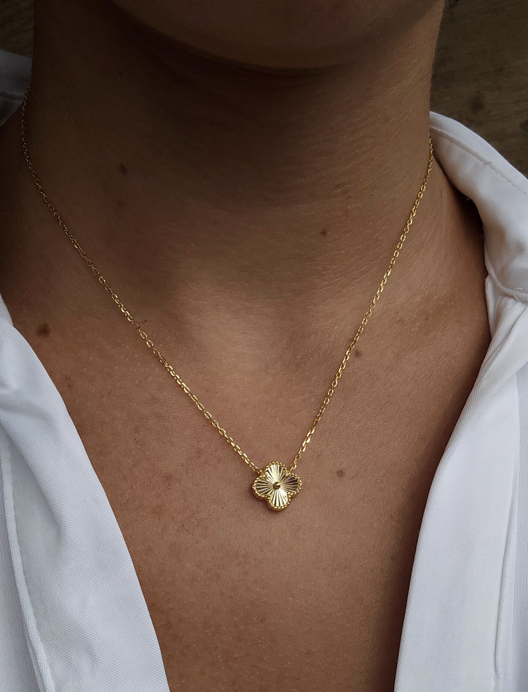 Colar em Prata com Banho de Ouro Pingente Trevo.