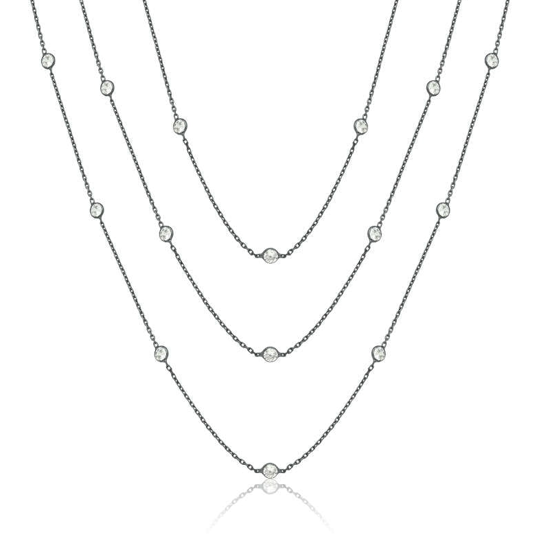 Este sofisticado colar em prata 925 com banho de ródio negro é um exemplo de elegância e estilo contemporâneo. Com três voltas de zirconias cristal, o colar adiciona um brilho discreto e refinado, ideal para complementar tanto looks casuais quanto ocasiões formais.
