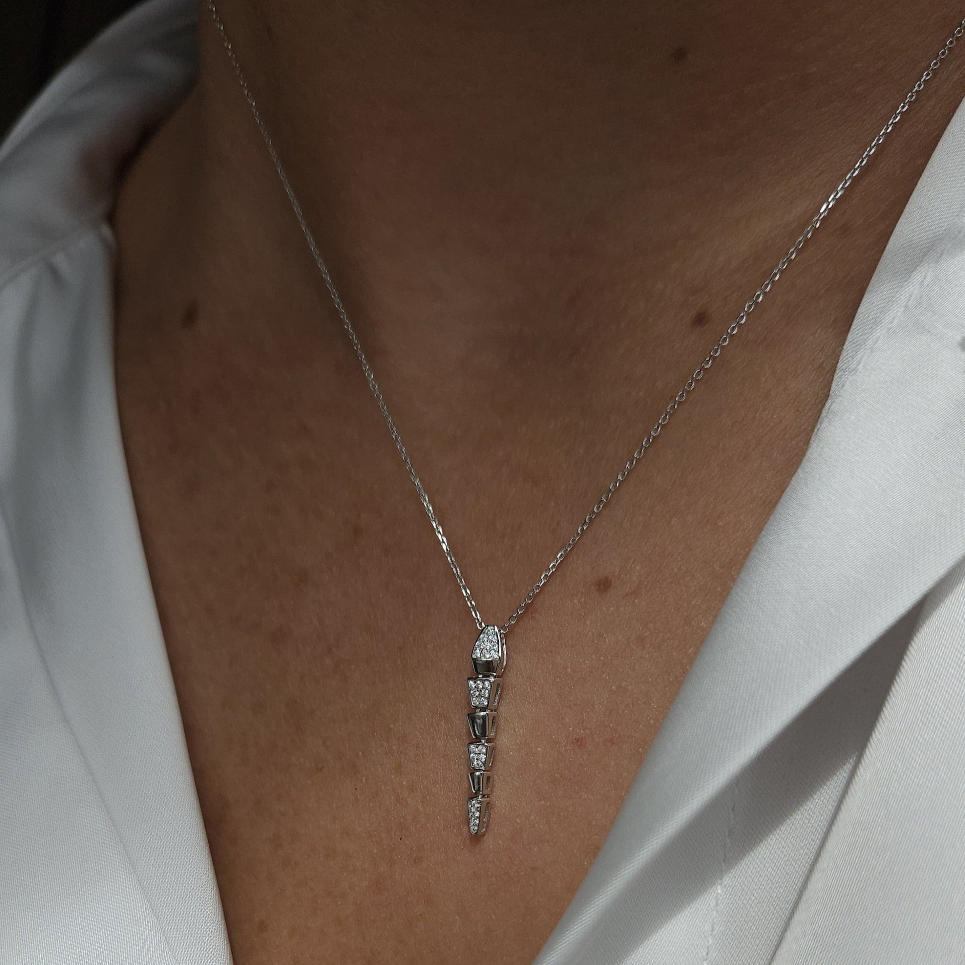 Colar em Prata com pingente em formato Serpente com Zircônias.