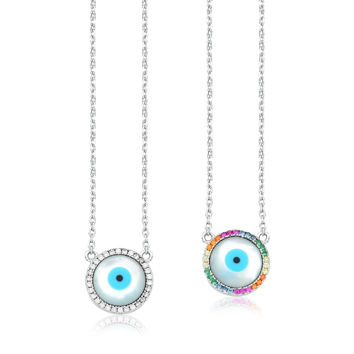 Um escapulário que une a proteção tradicional do Olho Grego com o brilho moderno das zirconias rainbow, trazendo um toque de cor e segurança ao seu estilo.