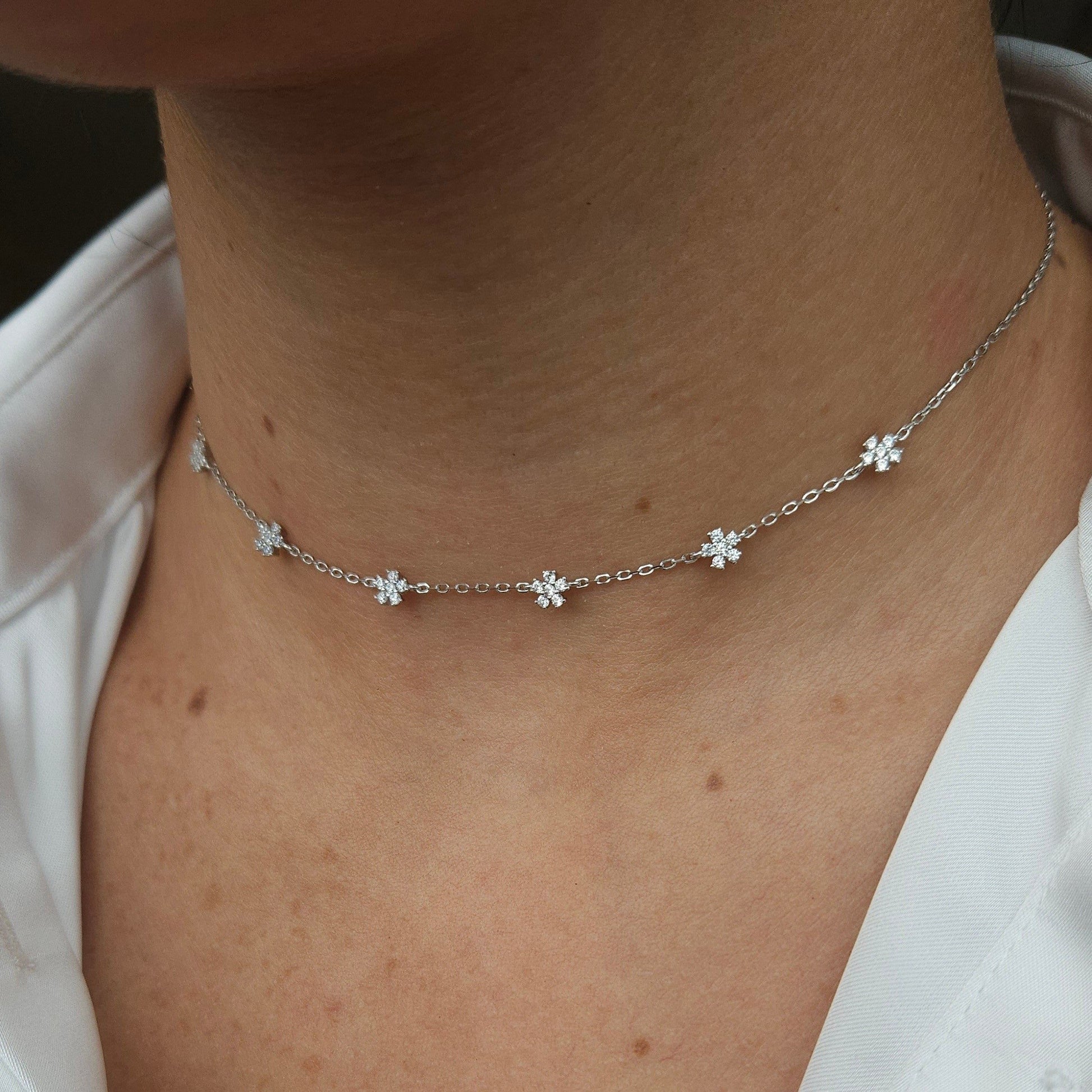 Colar estilo Chocker com Florzinhas de Zircônias.