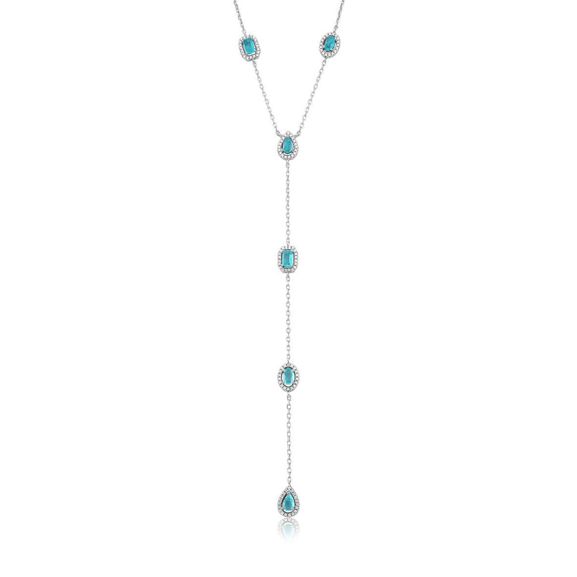 Esta gargantilha requintada em prata 925 apresenta um design elegante com uma estrutura de gravata, adornada com dois retângulos, dois ovais e duas gotas de turmalina. Todos os elementos são delicadamente cravejados com zirconias cristal, conferindo um brilho deslumbrante e um toque de sofisticação ao acessório.