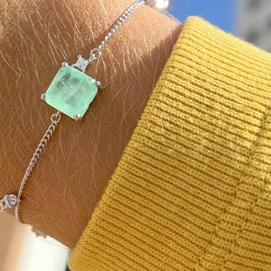 Esta pulseira em prata é o complemento perfeito para qualquer look, destacando-se pelo seu design elegante e a inclusão de uma pedra preciosa que adiciona um toque de sofisticação. Feita em prata de alta qualidade, é ideal para quem busca um acessório discreto, mas marcante.