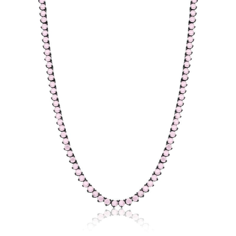 Colar Riviera com Zirconias Quartzo Rosa com banho de Rodio Negro.